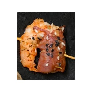 Une crevette bien fraîche et un chorizo légèrement piquant. Un mariage juste parfait !