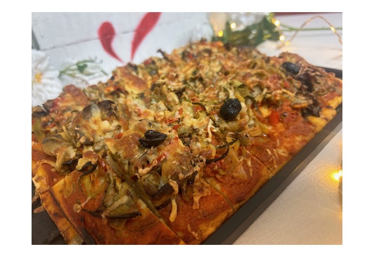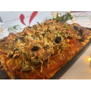 Pizza méditerranéenne à la tomate et mozzarella olives et herbes de Provence