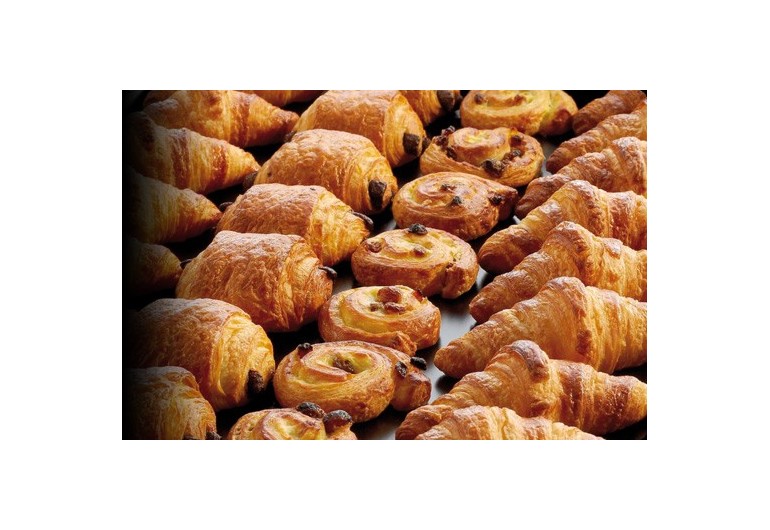 Assortiment de mini viennoiseries au beurre des Charentes: Croissants, pains au chocolat et pain aux raisins.